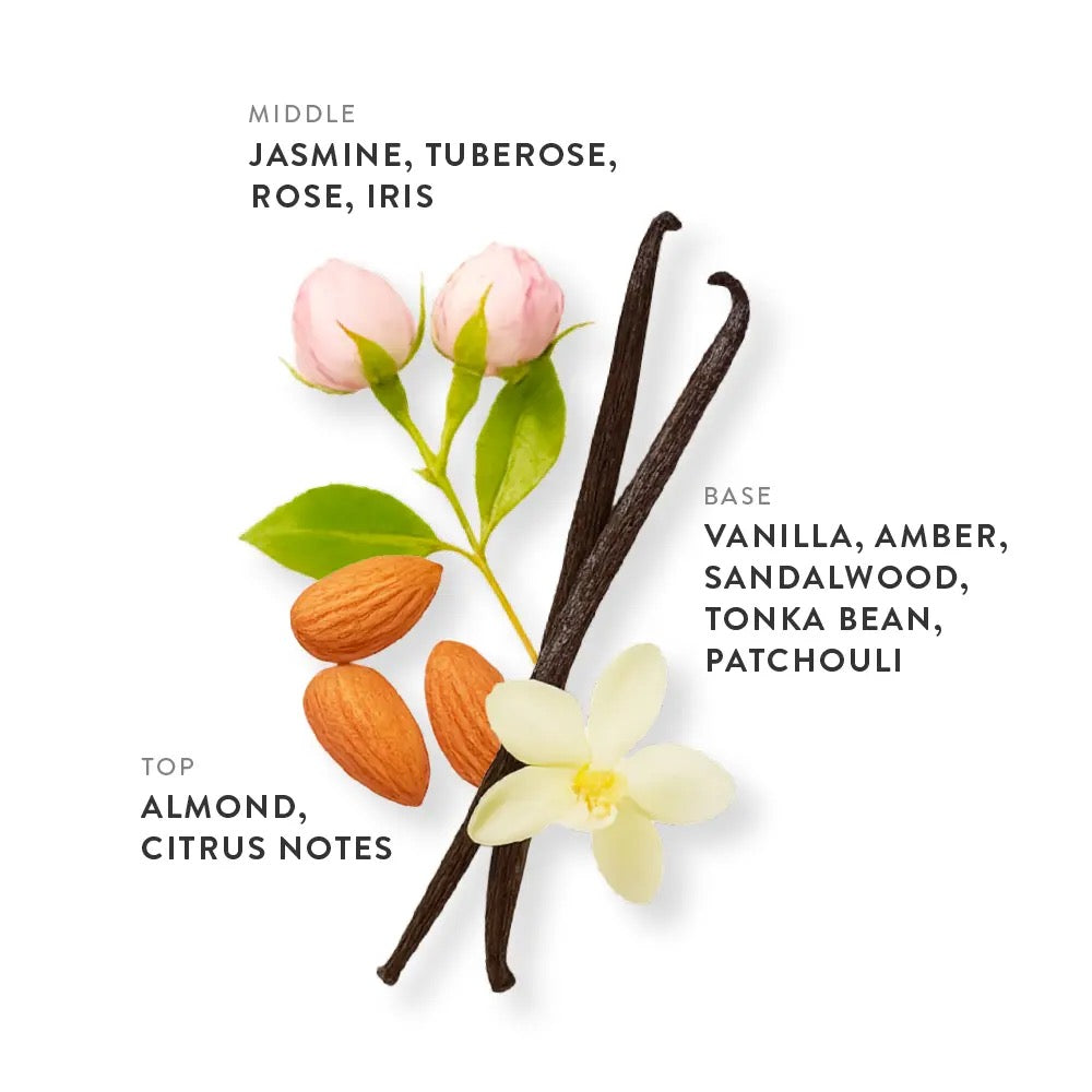 - Base Note: Vanilla, Amber, Sandalwood, Tonka Bean, Patchouli