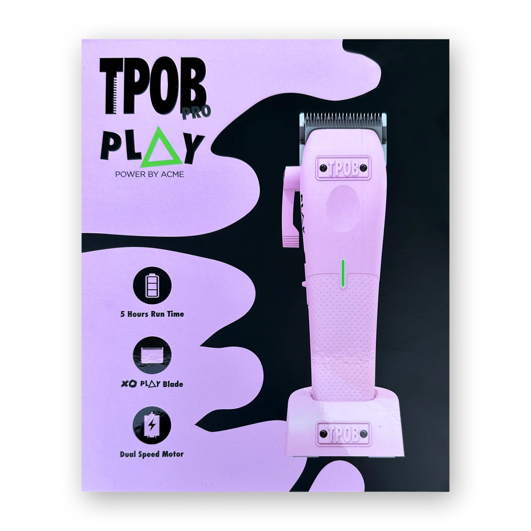 Customize your clipper with interchangeable rubber grips and TPOB logo inserts on both the machine and charging stand.